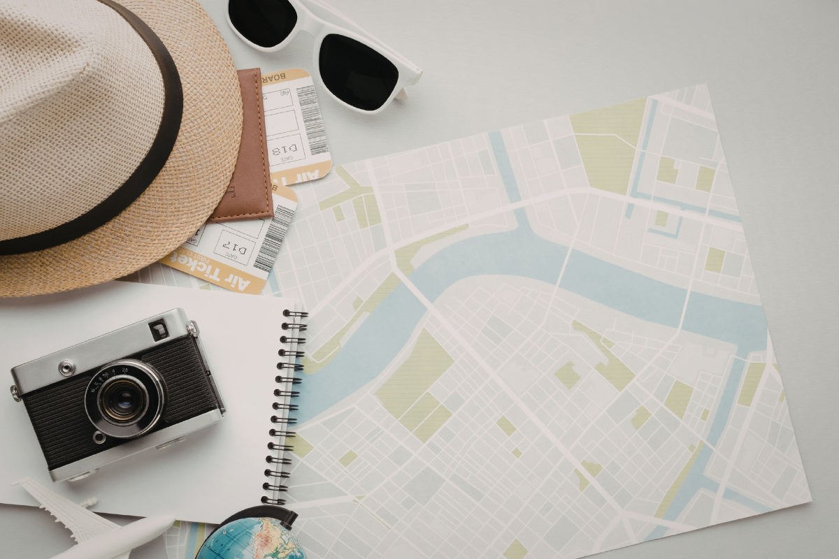 地図を見たり、荷物を並べたりしていると、